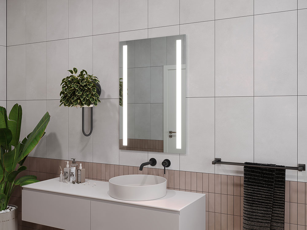 - 2-Sided Inset Lighting – sleek vertical illumination inset into the mirror